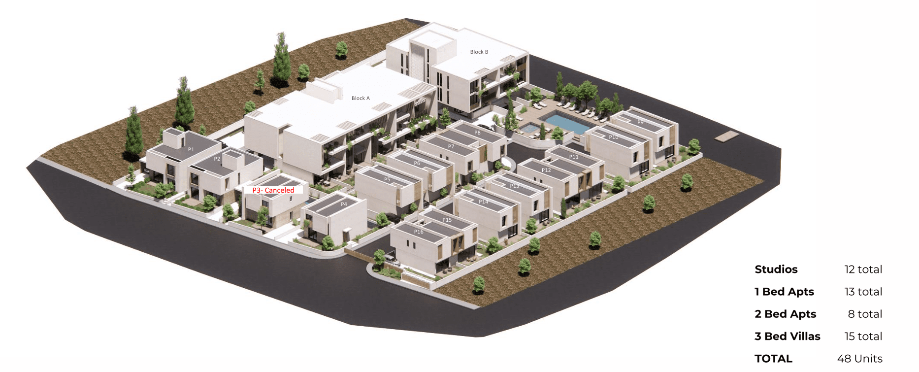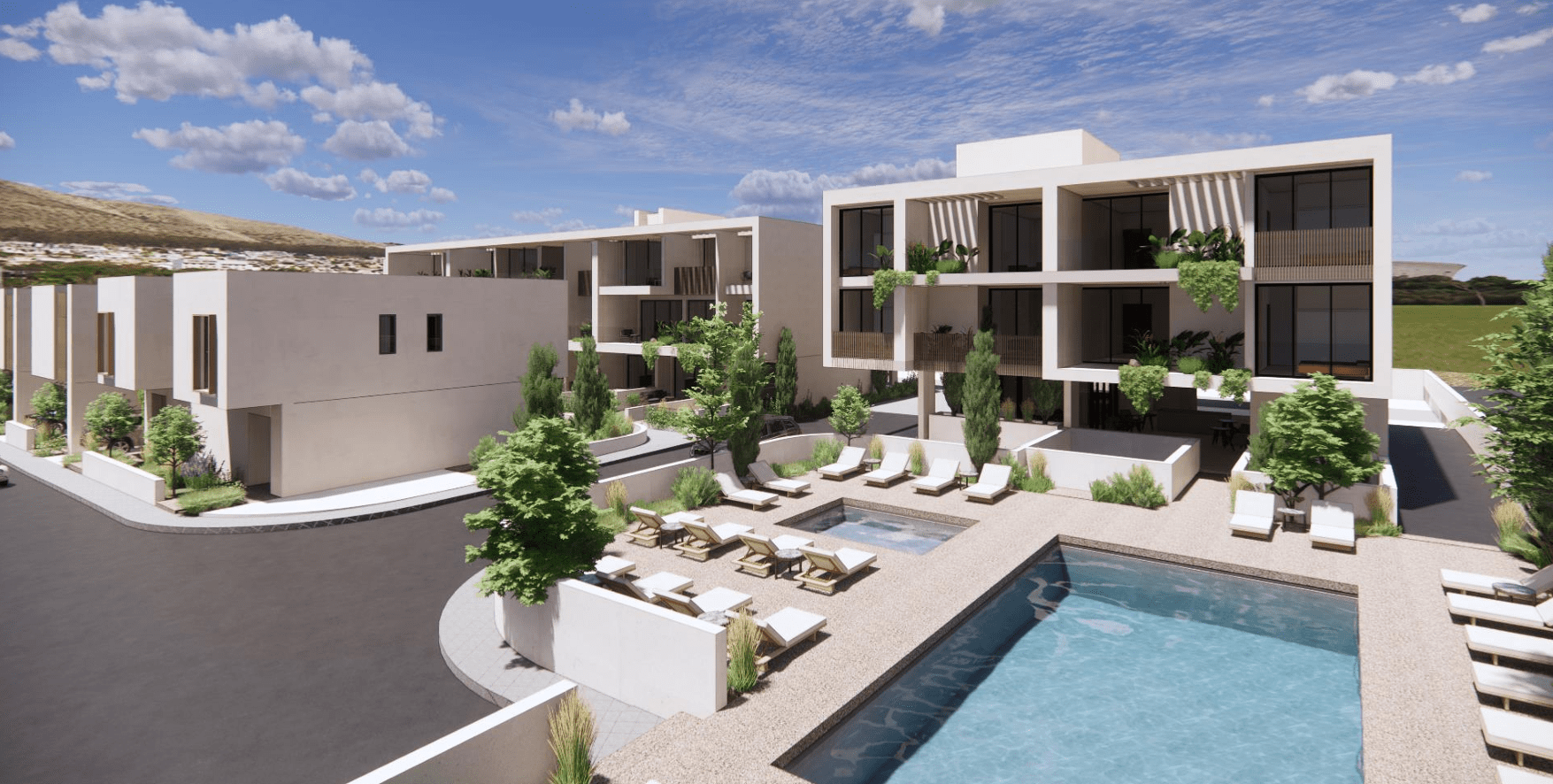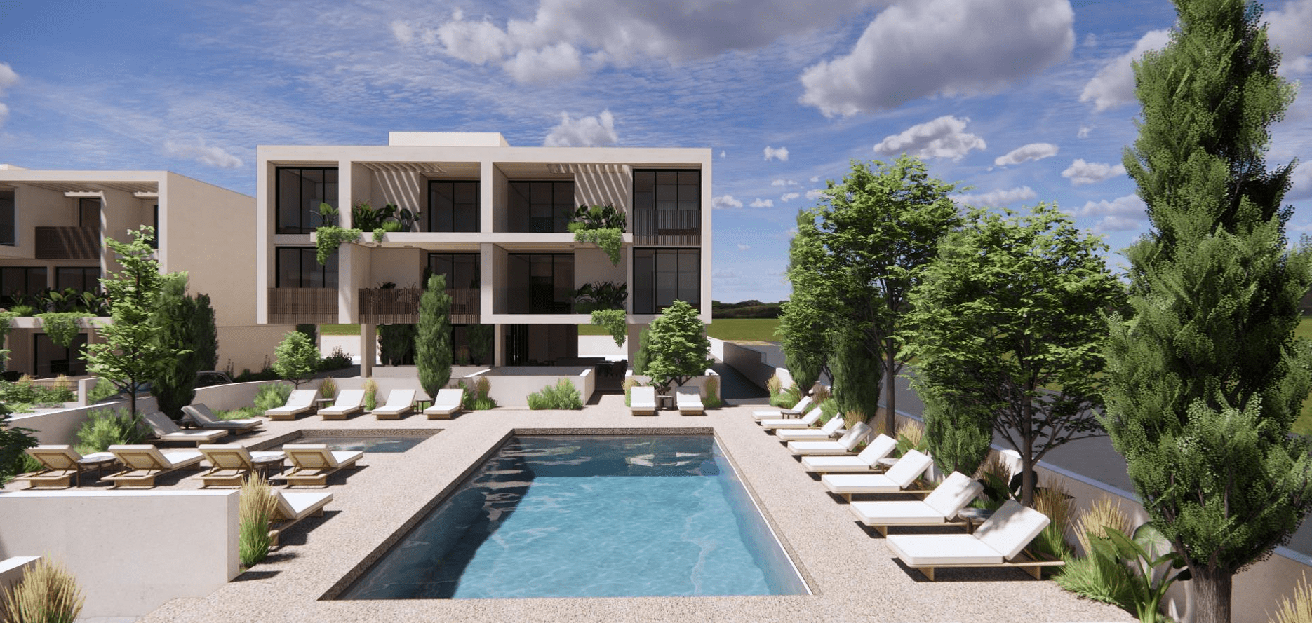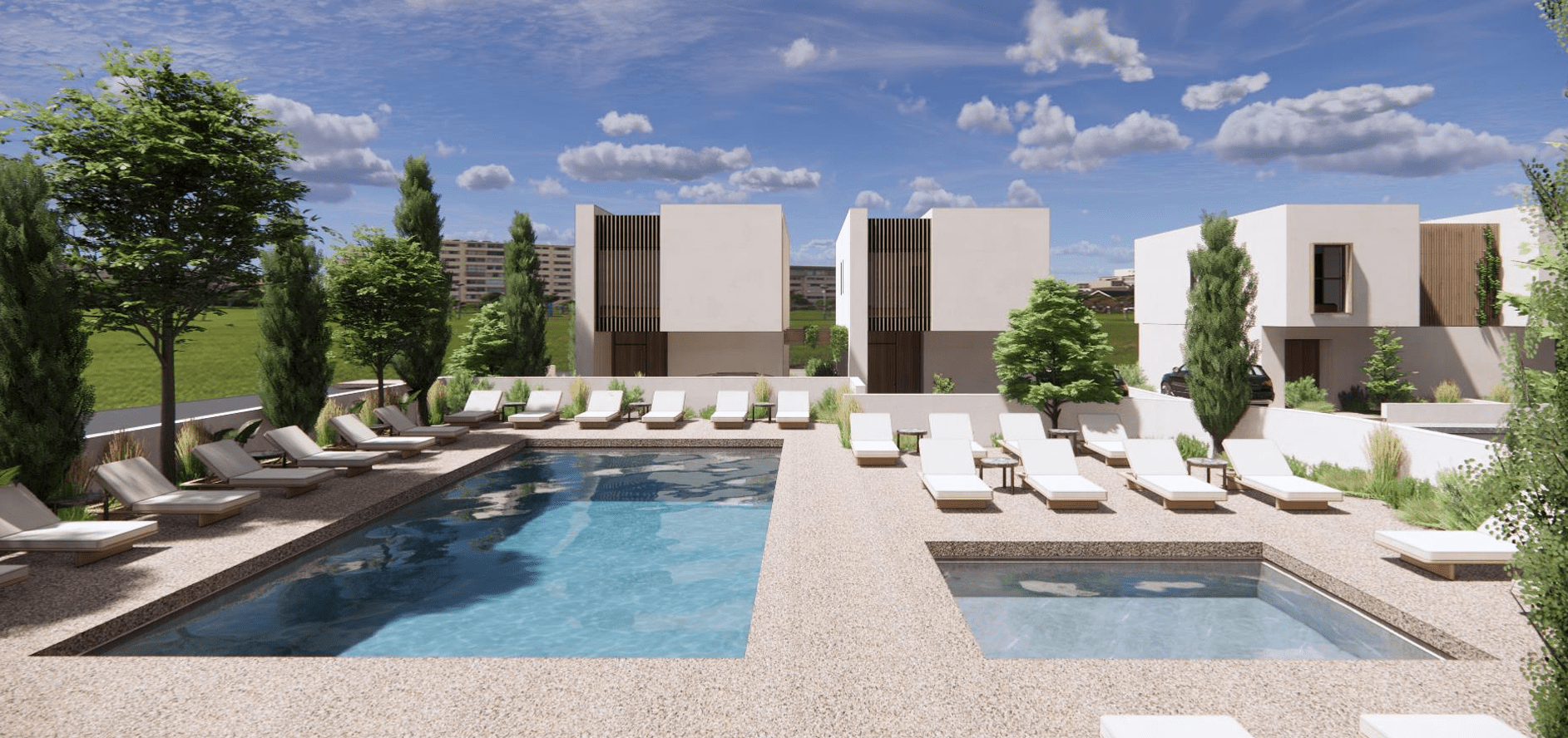 Dodatkowym atutem kompleksu jest basen wspólny – idealne miejsce na relaks w promieniach śródziemnomorskiego słońca.