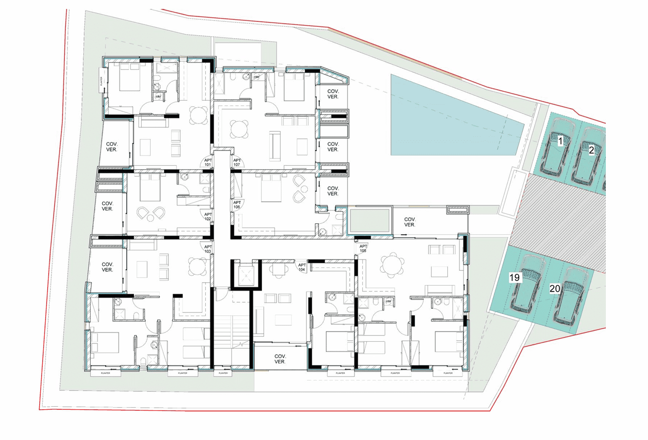 Apartament 105, położony na pierwszym piętrze prestiżowej inwestycji Bluvia Residences, to doskonała propozycja dla osób poszukujących przestrzeni łączącej nowoczesny design z komfortem codziennego życia. Dzięki dużej powierzchni wewnętrznej oraz prywatnemu zadaszonemu tarasowi, mieszkanie zapewnia idealne warunki do relaksu i wypoczynku w śródziemnomorskim klimacie.