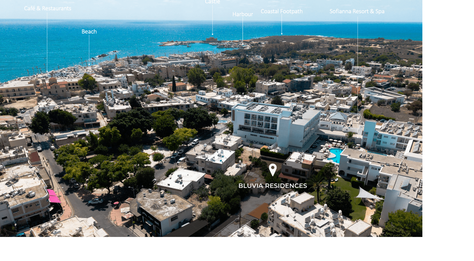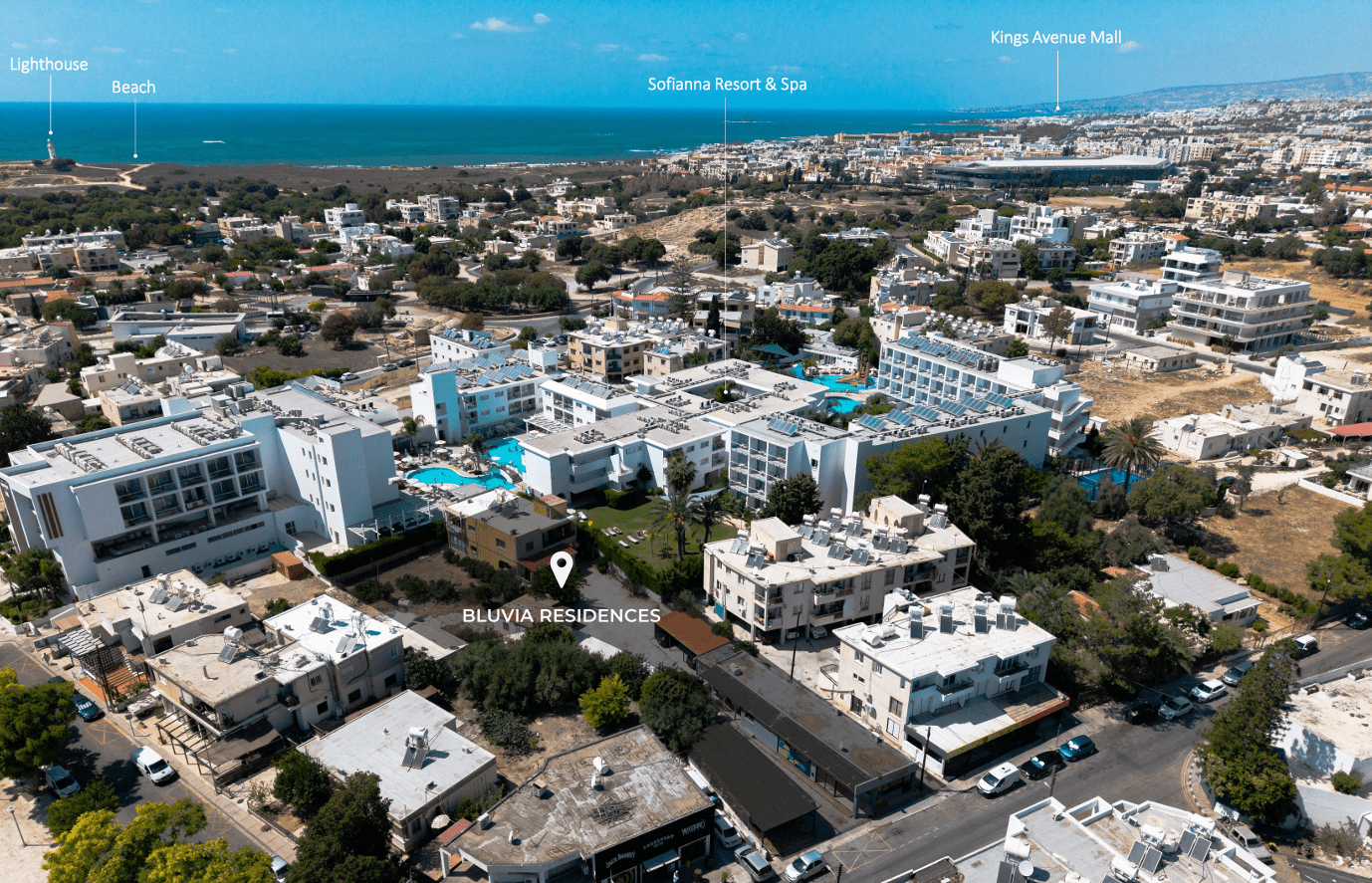 Bluvia Residences to wyjątkowy projekt mieszkaniowy zlokalizowany w samym sercu tętniącego życiem Kato Pafos, zaledwie kilka kroków od błękitnego wybrzeża, malowniczego portu i wszelkich miejskich udogodnień. To miejsce, gdzie nowoczesna architektura spotyka śródziemnomorską atmosferę, oferując idealne warunki zarówno do życia na stałe, jak i wypoczynku.
