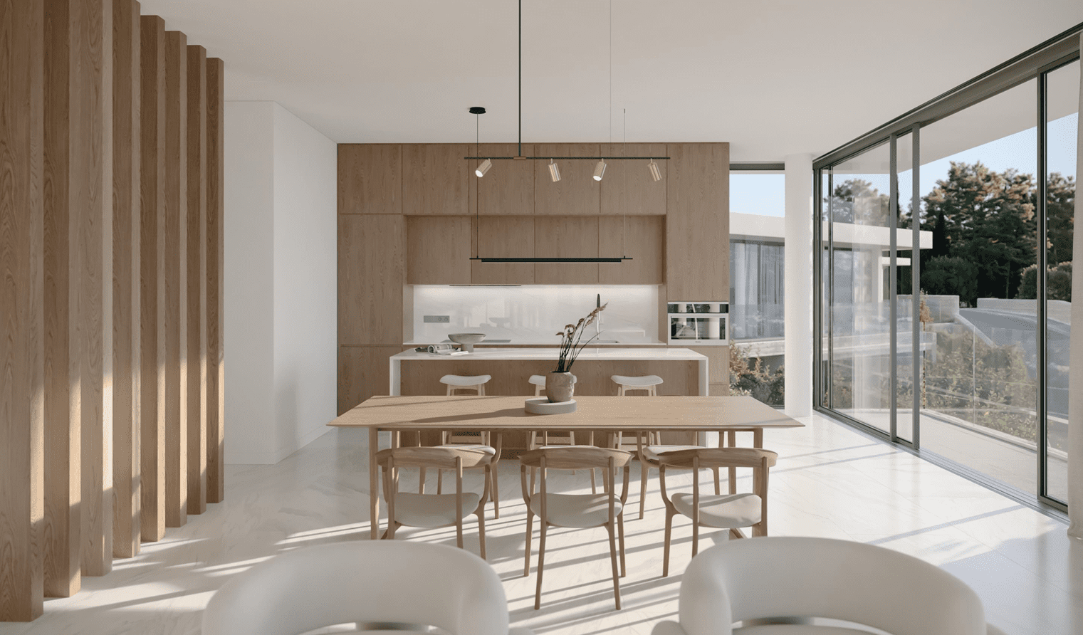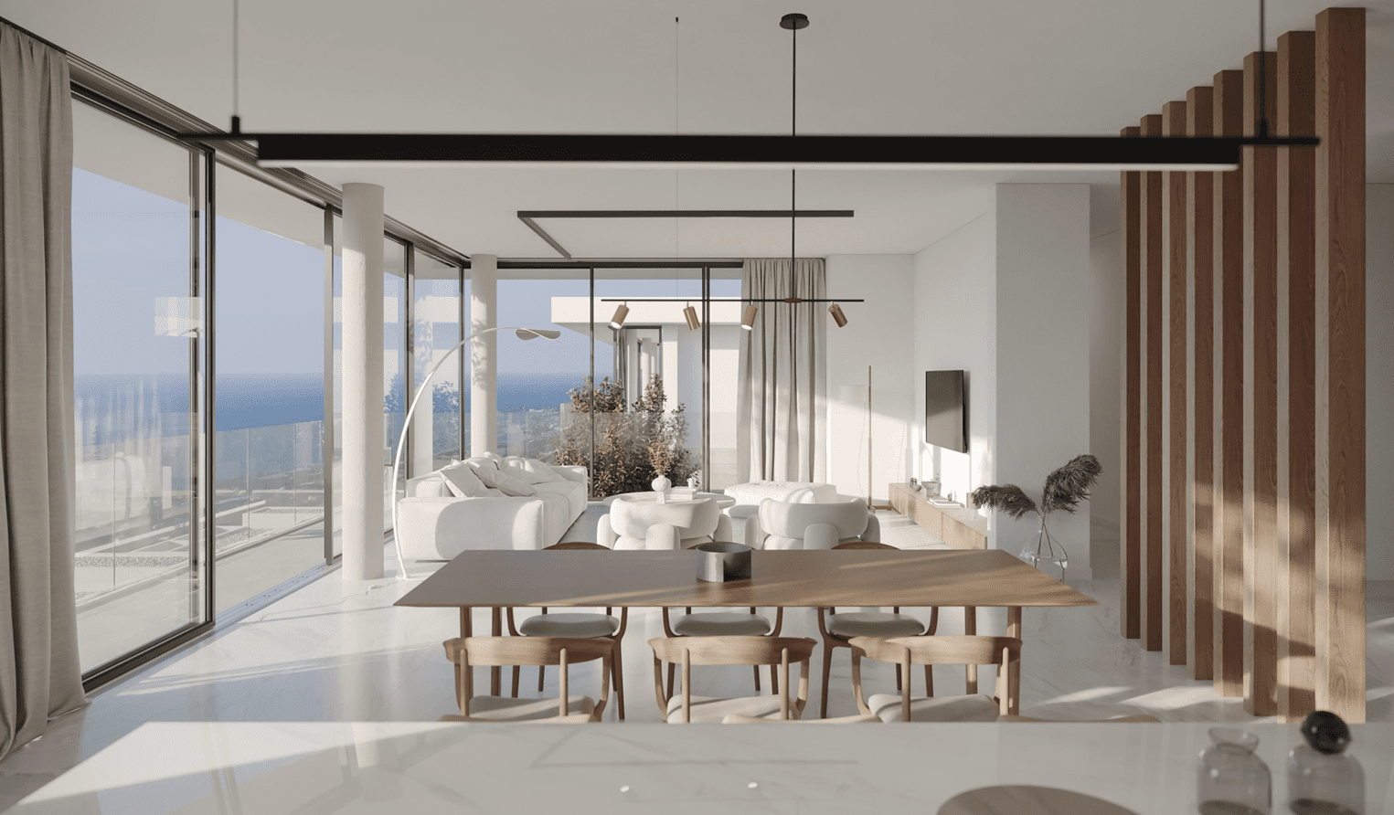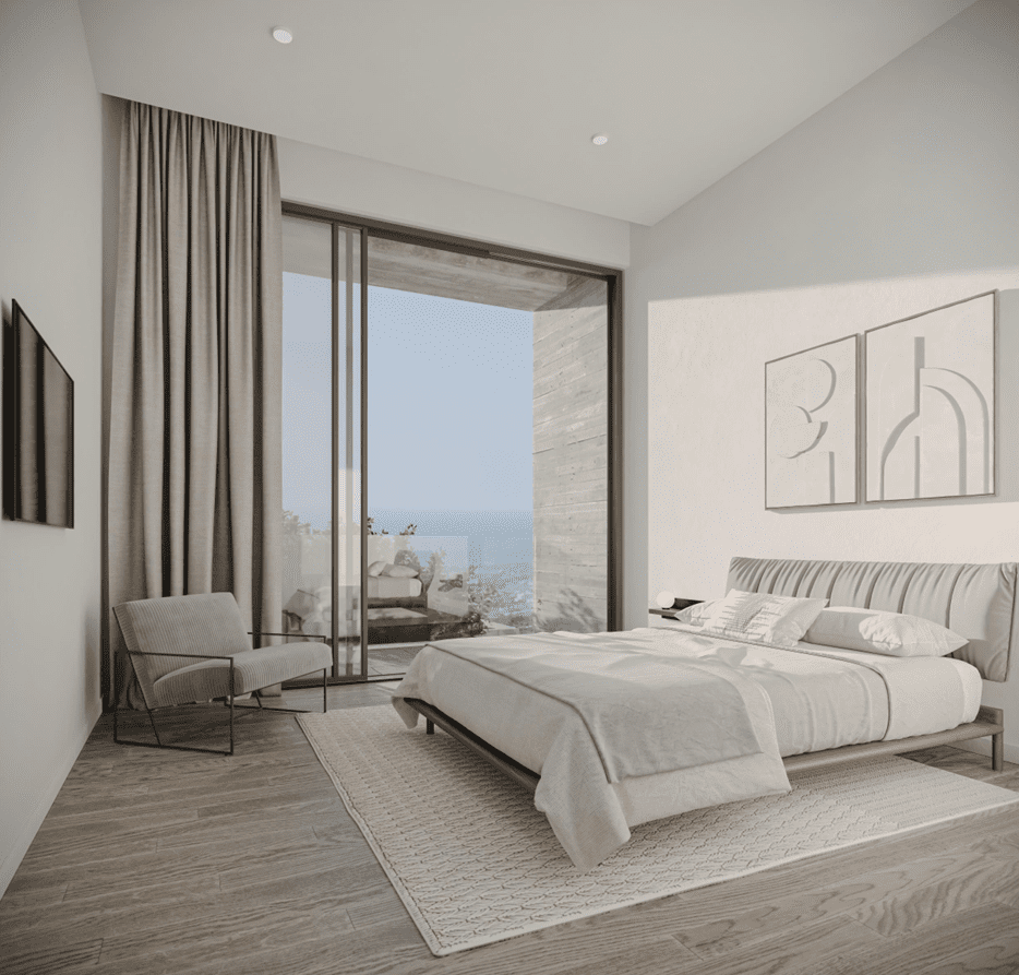Każda willa została zaprojektowana z myślą o maksymalnym wykorzystaniu widoków i naturalnego światła – duże przeszklenia, przestronne tarasy oraz płynne przejścia między wnętrzem a ogrodem tworzą atmosferę swobody i relaksu.
