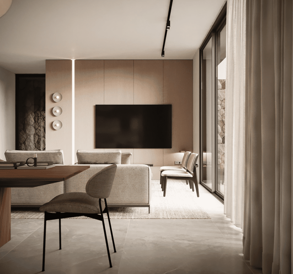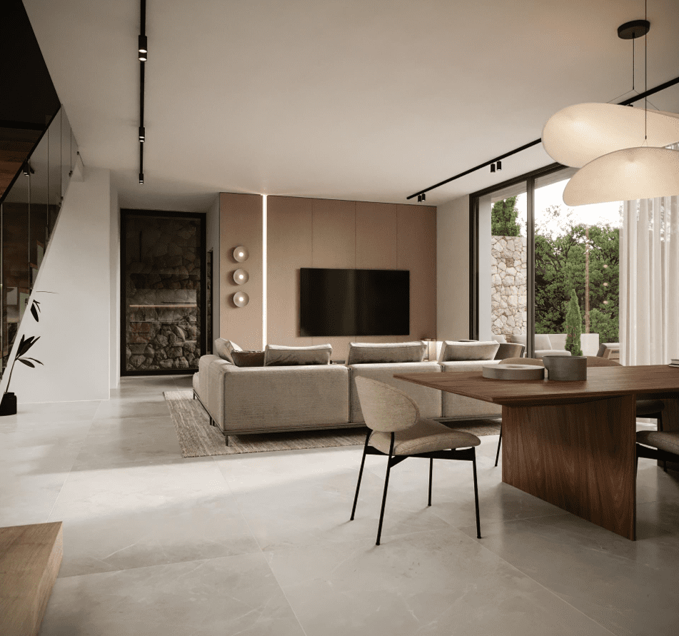 Wyjątkowy charakter nieruchomości podkreślają beton architektoniczny, kamienne ściany i drewniane okładziny, które nadają jej ponadczasową elegancję i naturalne piękno. Te materiały nie tylko zachwycają estetyką, ale również gwarantują trwałość i solidność, tworząc przestrzeń o unikalnym klimacie.